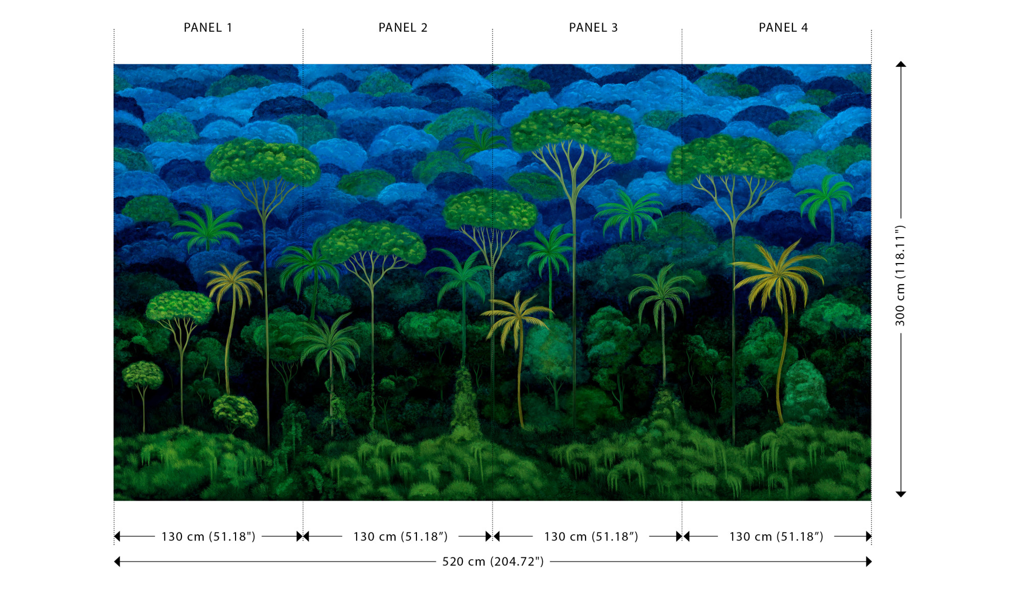 Ciel Tropical pokazuje surrealistyczną panoramę tropikalnej dżungli. Ta żywiołowa panorama wykonana jest z wyjątkowo miękkiej aksamitnej tkaniny i nada Twojemu wnętrzu ekskluzywny wygląd z dużą dozą luksusu.
