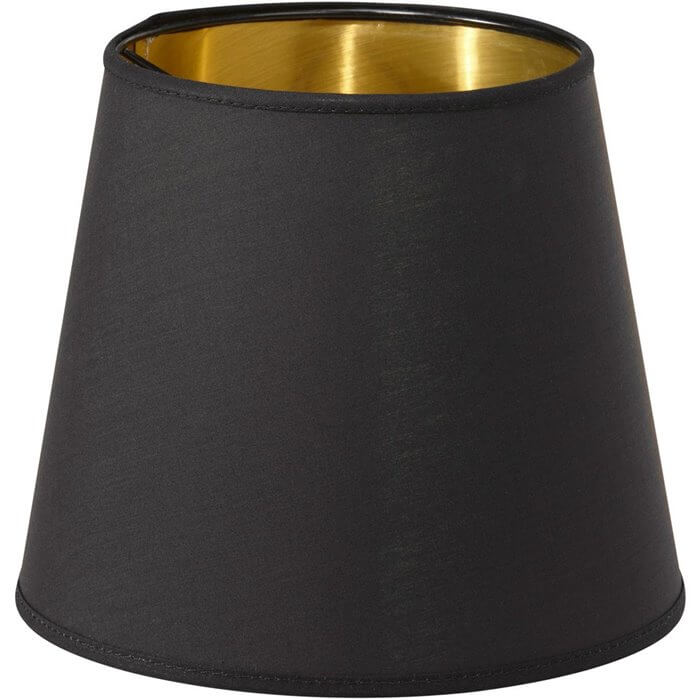 Klasyczny, stożkowy abażur w kolorze czarnym ze złotym środkiem. Na zamówienie dostępny także w innych kolorach i rozmiarach. Prosimy o wiadomość mailową w celu poznania szczegółów: sklep.decorlivinghome@gmail.com
