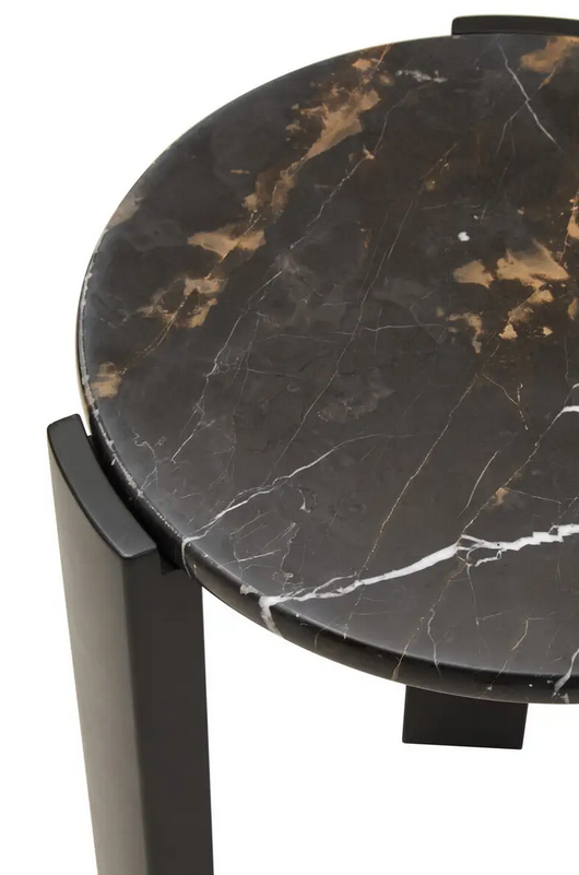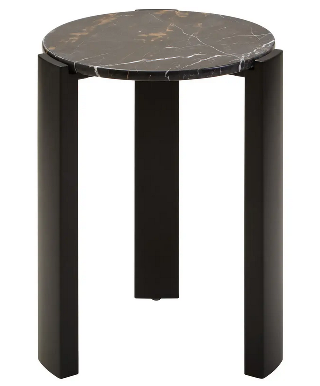 Ten niewielki okrągły stolik posiada blat z czarnego marmuru, którego unikalny organiczny wzór nadaje mu wyjątkowego charakteru. Stabilne nogi z naturalnego drewna akacjowego zapewniają nie tylko solidność, ale i elegancki wygląd. Doskonale sprawdzi się jako stylowy akcent w nowoczesnych wnętrzach, wprowadzając do przestrzeni naturalne piękno oraz subtelną elegancję.