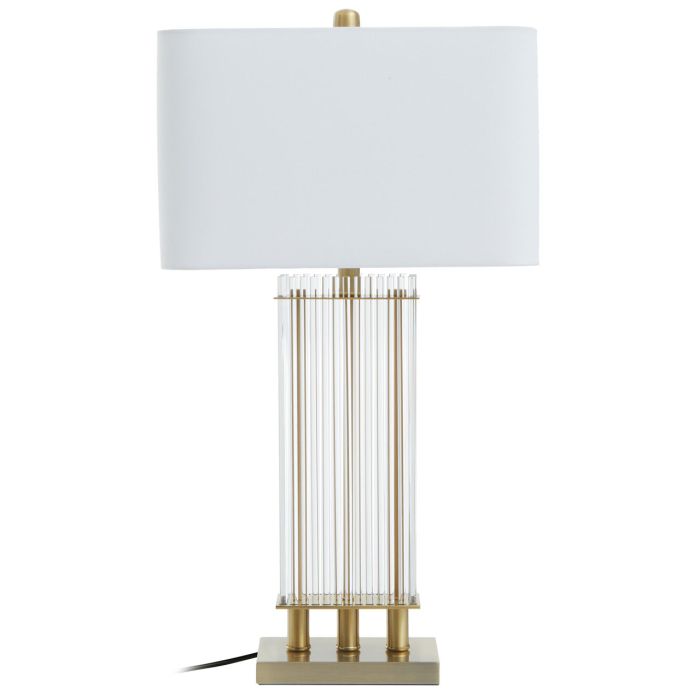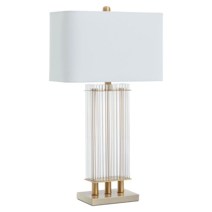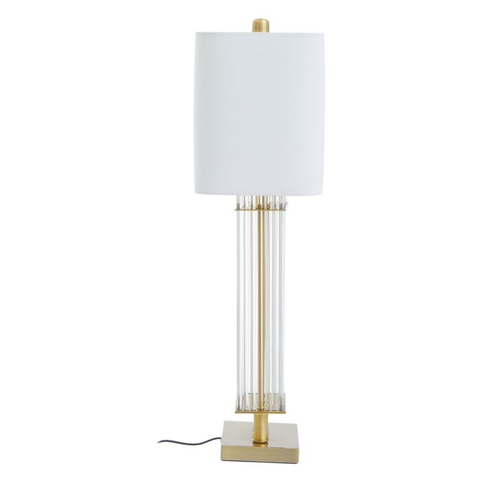 Emitując czarujący blask, ta lampa stołowa będzie wspaniałym dodatkiem do salonu. Ta lampa stołowa, doskonale nadająca się do tradycyjnych mieszkań, szczyci się elegancją i dyskretnym designem. Połączenie kolumny z przezroczystego szkła i złotej podstawy wprowadza wyrafinowane do otoczenia.