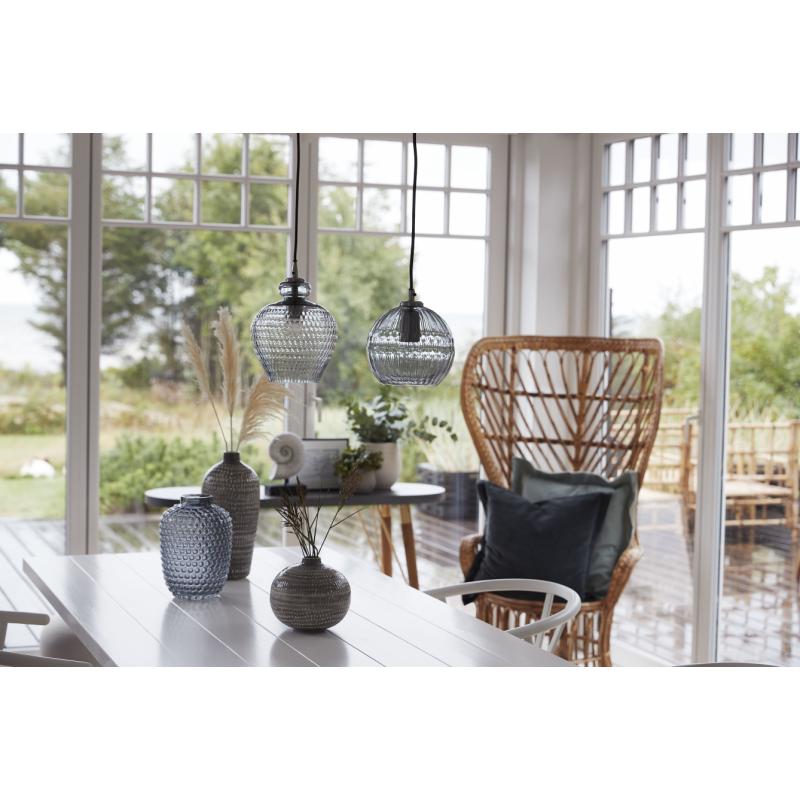 Wisząca lampa Macil wykonana jest z dekoracyjnego szkła o ciemnoszarym zabarwieniu. Stanowi nietuzinkową dekorację wnętrz.