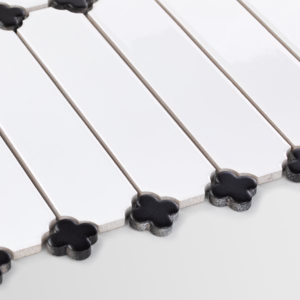 Płytka Cecile Biały Połysk z Czarną Koniczyną
