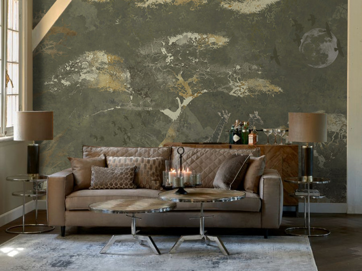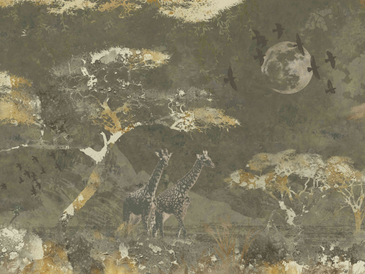 Mural z egzotycznym wzorem, który będzie jak prawdziwa podróż po dzikiej dżungli. Spacerujące żyrafy zostały przedstawione wśród pięknej roślinności, całość tworzy bardzo egzotyczny motyw. Projekt doskonale zaprezentuje się w nowoczesnych oraz tropikalnych aranżacjach. Bardzo dobrze odnajdzie się jako akcent na najważniejszej ścianie w salonie, pokoju dziennym oraz sypialni. Mural tropikalny może być także doskonałym tłem dla łóżka, kanapy bądź sofy.Tapeta składa się z 11-stu paneli, tworzących razem cały wzór.Panel z motywem dżungli pochodzi z katalogu Riviera Maison. Cały zbiór jest zainspirowany podróżowaniem po świecie, projekty zawierają miękkie akcenty oraz naturalne kształty, które dodają ciepłego tonu wnętrzom. W całym zbiorze dostrzec można wpływy tropikalne, motywy nawiązujące do Indonezji oraz gęstych lasów. Riviera Maison to także wyjątkowe i wyrafinowane panele dekoracyjne, które zamienią Wasze ściany w prawdziwy, wielkoformatowy obraz, który zachwyca swoim pięknem. CENA: 494zł/m²